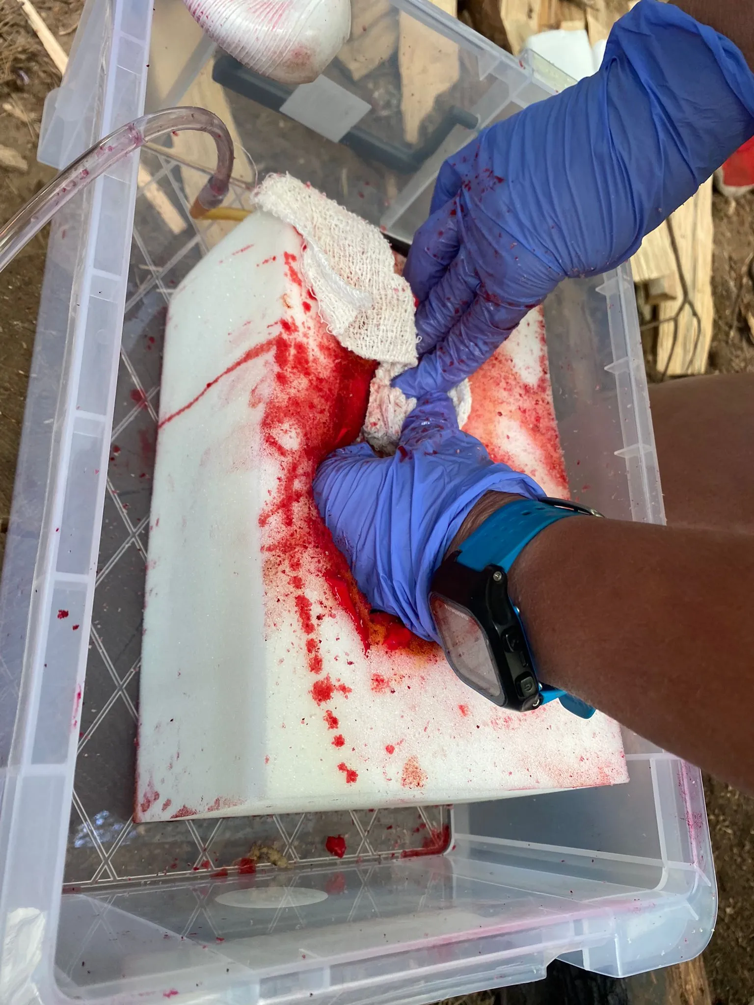 *The injuries seen in these photographs are not real, they have been created using fake blood and other materials for the purpose to assist those people undertaking the FROS3 course.*